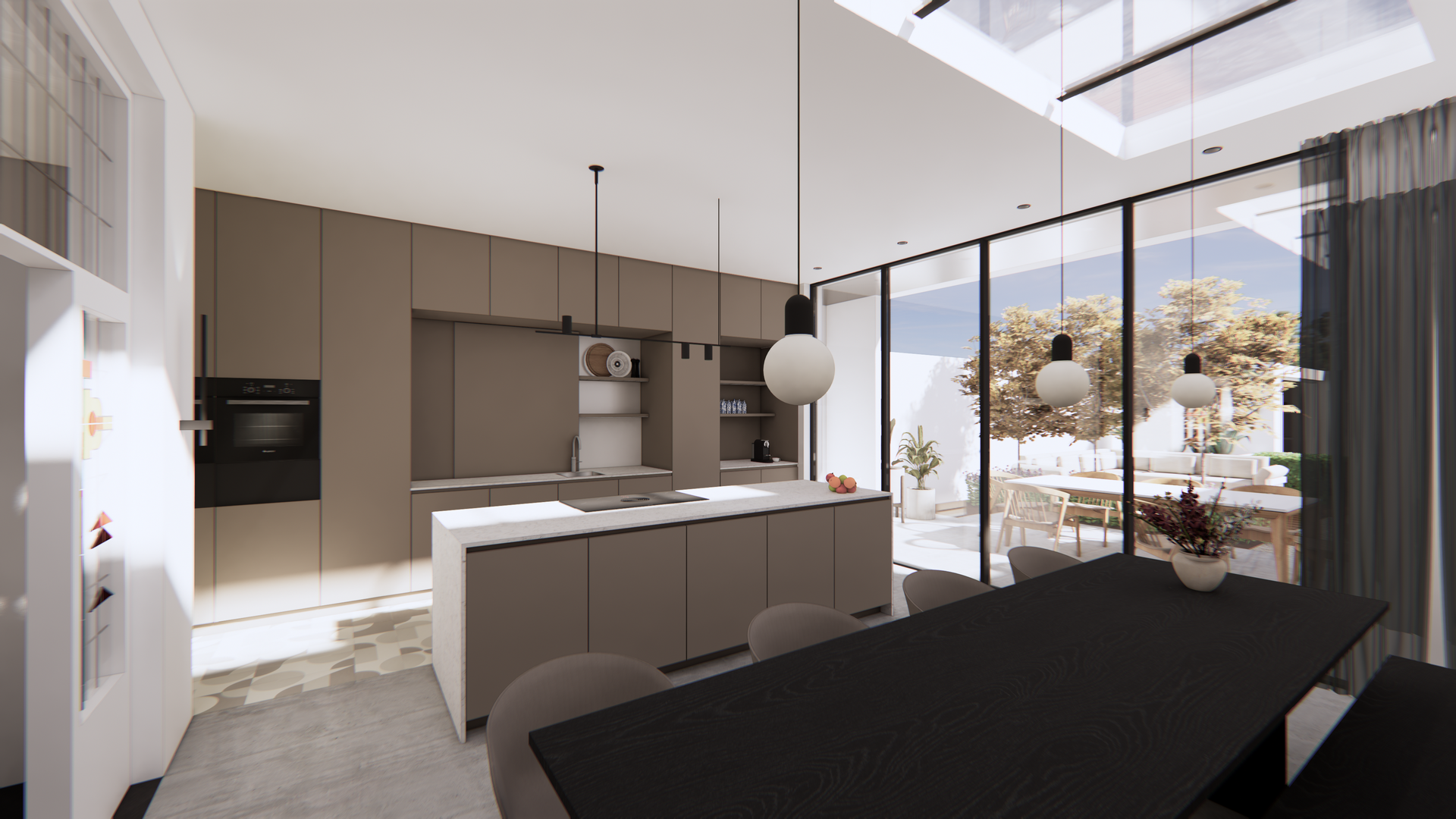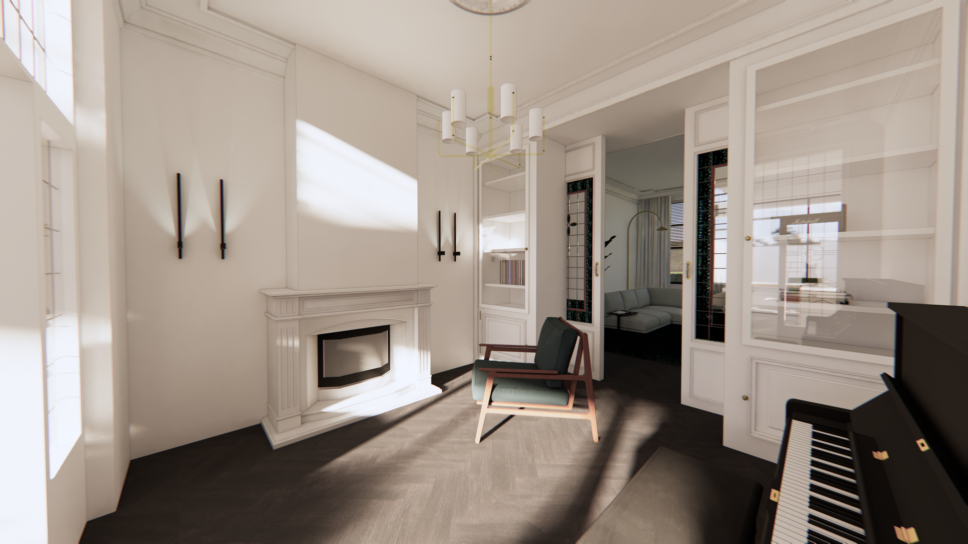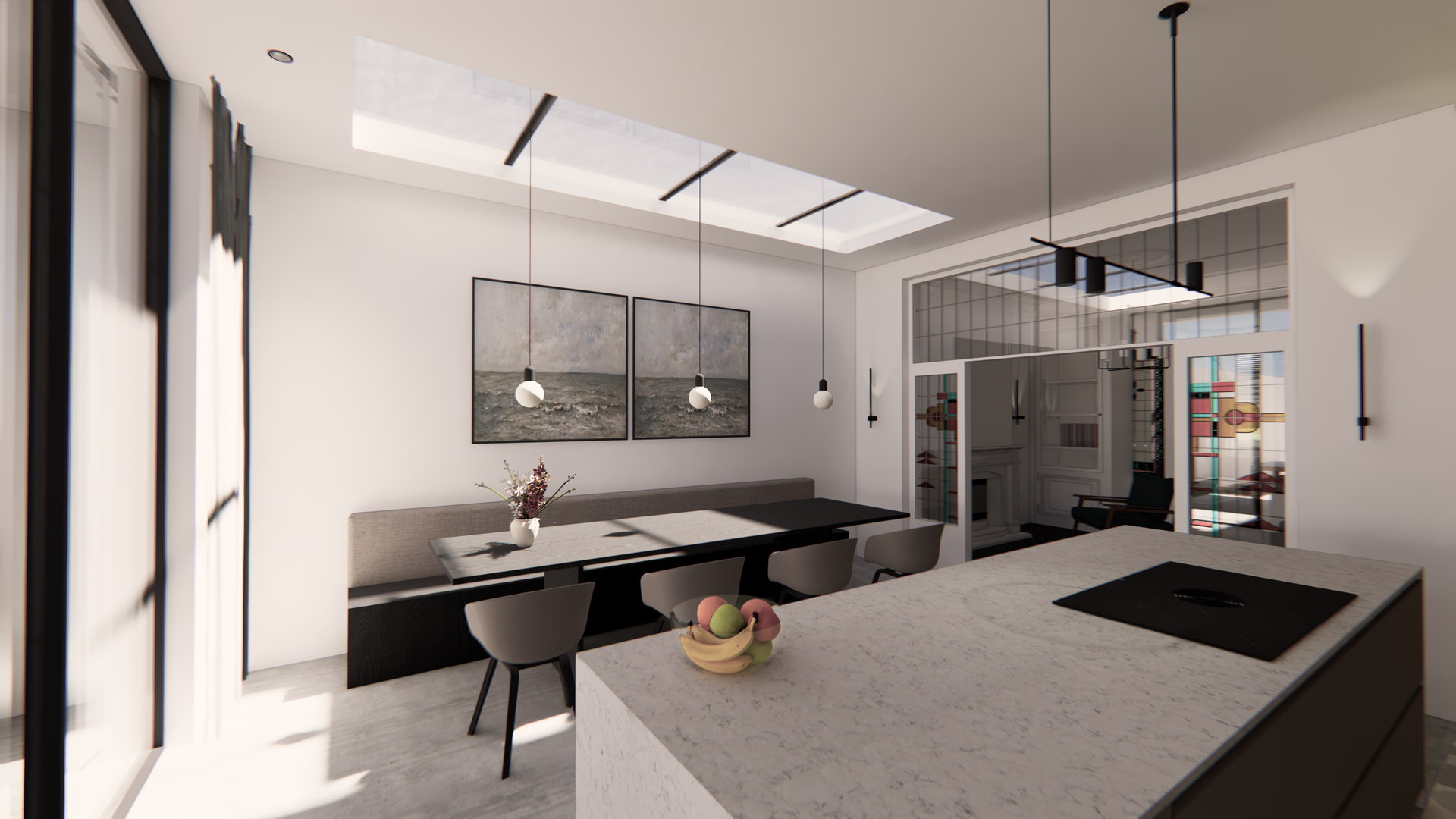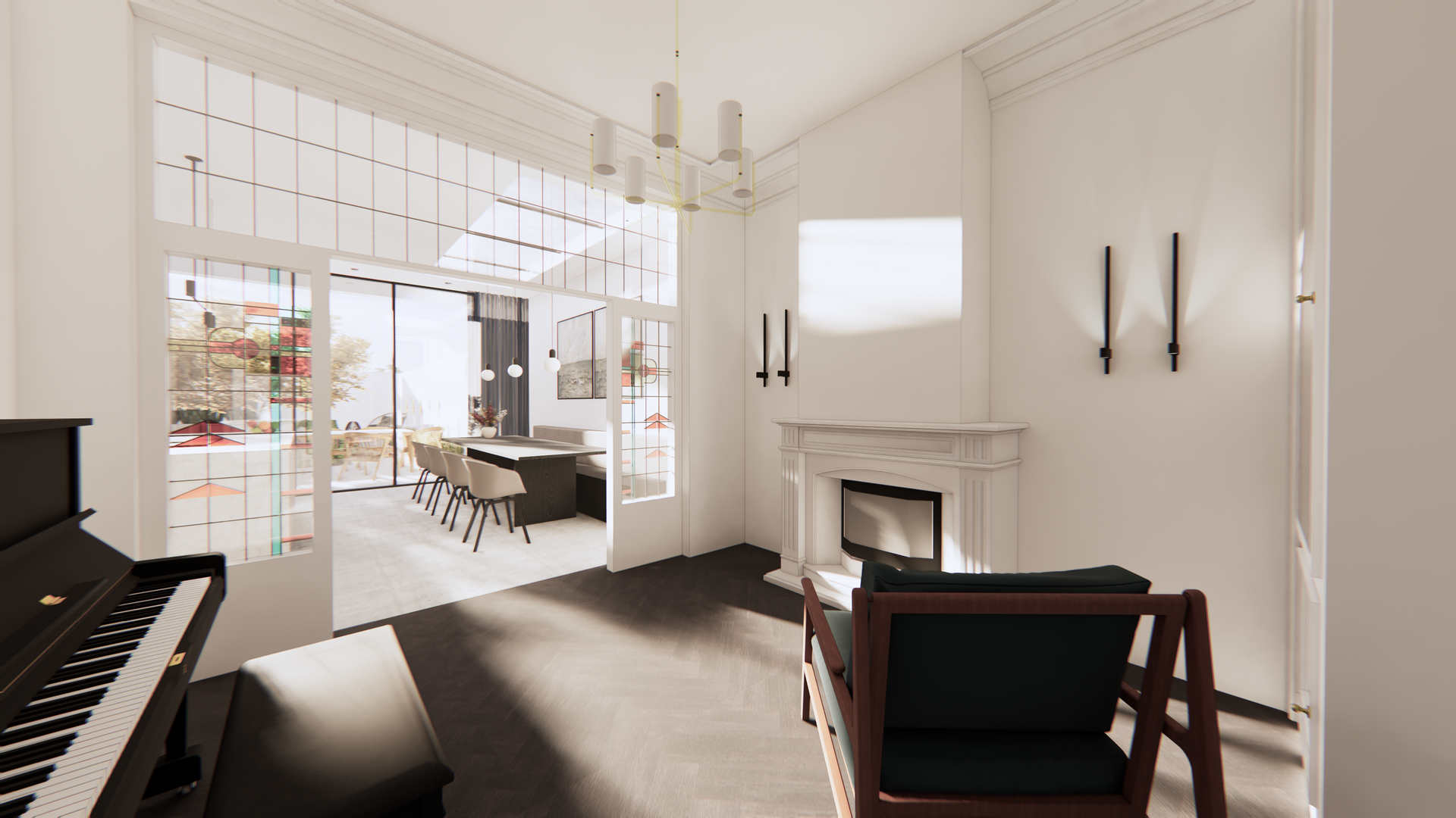 Voor een herenhuis in Breda heb ik een interieuradvies verzorgd voor de gehele begane grond. Door een externe partij is er een uitbouw ontworpen. Vervolgens ben ik daarop verder gaan borduren en heb ik een luxe keuken ontworpen welke van alle gemakken is voorzien. De aanbouw heeft de functie koken en eten/gekregen en de overige ruimtes zijn ruimtes om te ontspannen en samen te zijn. Er is een mooi balans gecreëerd tussen de bestaande situatie en de nieuwe situatie. Origenele ornamenten zijn gerestaureerd terwijl je in de nieuwe situatie strakke details waarneemt.
